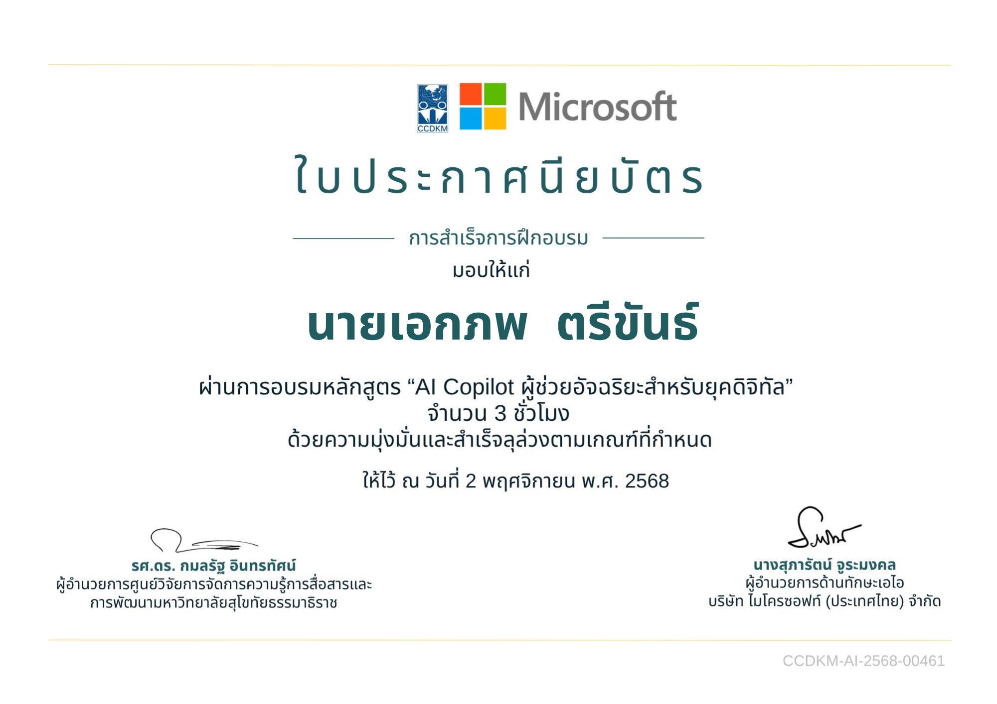 รับรองความรู้และทักษะที่ได้เรียน