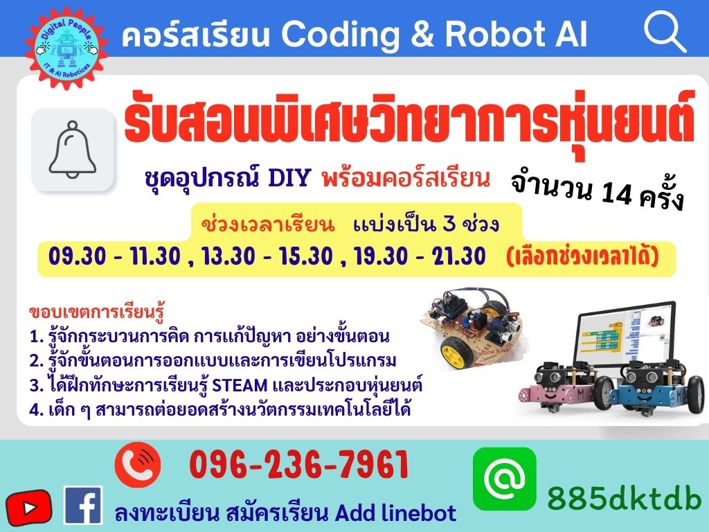 หลักสูตรวิทยาการหุ่นยนต์ Coding & DIY Robot AIOT innovation